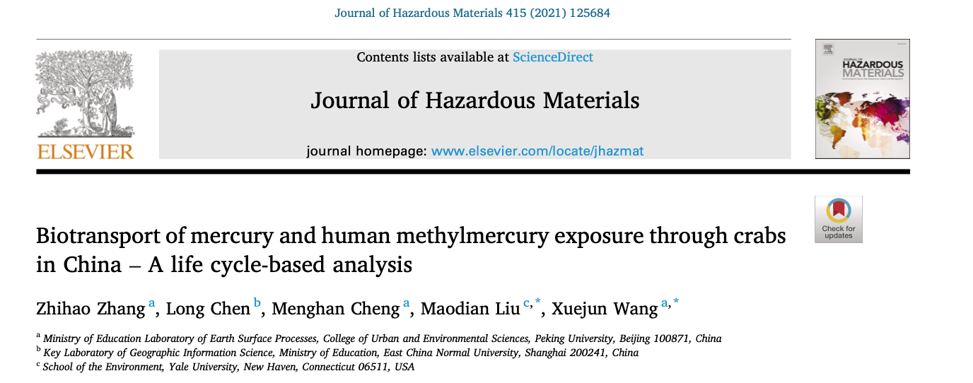 拔尖计划学生张志皓同学以第一作者在《Journal of Hazardous Materials》发表拔尖成果