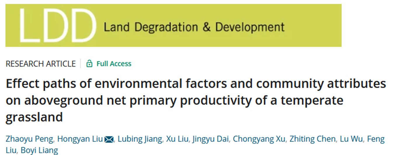 拔尖计划学生彭昭宇同学以第一作者在《Land Degradation & Development》发表拔尖成果