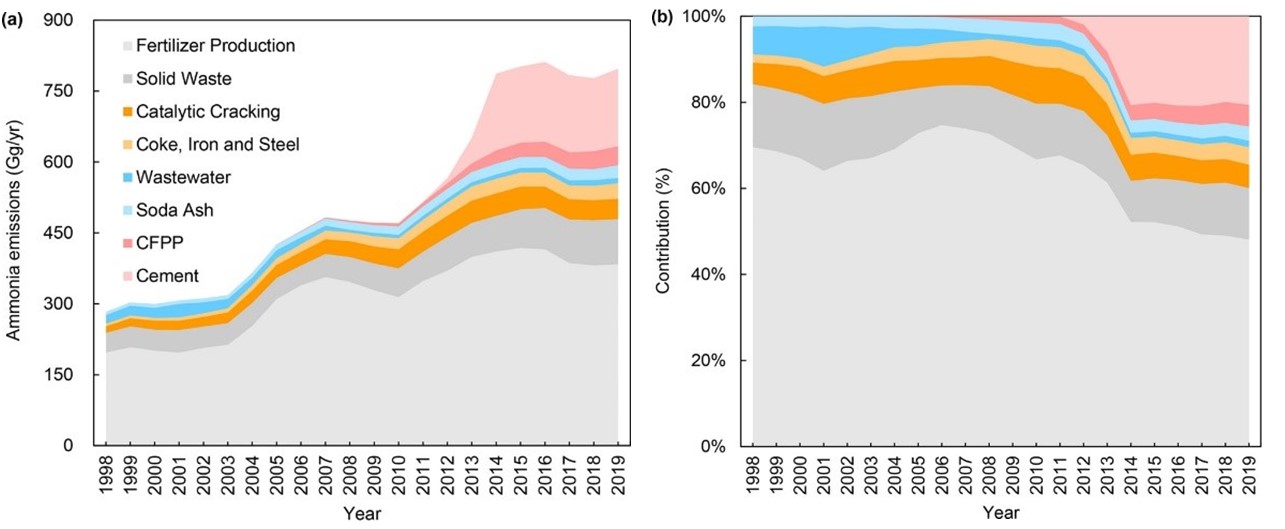 氨(NH3)是二次无机气溶胶的重要前体物,对氮沉降和酸雨有重要影响。以往的研究主要集中于农业源氨排放,而最近的研究指出,中国的工业源氨排放也很重要。然而目前,中国工业部门氨排放尚且缺乏详细的估计。