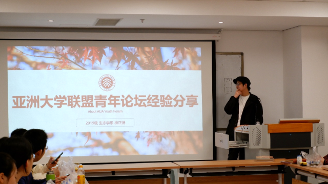 拔尖基地强调“深化国际合作,创新学习方式”,特别强调学生要具有国际视野和国际交流能力。本次活动邀请到最近参加了亚洲大学联盟青年论坛的2019级拔尖学生桂正扬同学为大家分享参会的经历、会议活动以及心得体会。