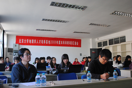 2011年10月16日,我院组织了“北京大学地理学人才培养基地”2011年度本科生科研项目评审会。根据科研项目的学科性质,评审分为自然和人文两组,分别在新地学楼3459和3358报告厅举行。经过认真的答辩和讨论,最终有10个课题组共15名学生获得2011年度本科科研项目评审的一、二、三等奖。
