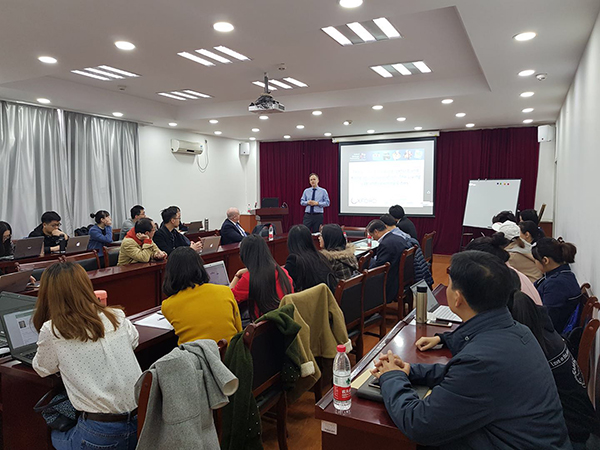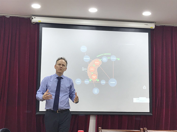 ,Bev Hindle先生作了题为“The Vision for Smart Oxord and Xiong’an Collaboration: The Living Lab and Learning Cities”的学术报告,报告由冯长春教授主持,贺灿飞院长致欢迎词。Hindle先生首先介绍了牛津郡在英国南部牛津-剑桥增长走廊中的重要地位,之后主要围绕牛津郡在智慧城市建设方面的诸多成功实践和未来设想展开,包括政企合作共建、公共交通发展、清洁能源使用、社区创新组织、健康福利保障等内容,并就牛津经验对雄安新区智慧城市建设的示范性作用作出启发式讨论。 图1 Bev Hindle介绍牛津郡智慧城市建设 图2 讲座现场 现场提问环节,Bev Hindle与在场师生就中英两国智慧城市建设方面展开热烈的讨论,如中资企业参与牛津郡城市建设的情况、两国政府对城市建设管治机制的差异、城市规模对智慧城市建设的影响等问题,使在场师生对两国城市建设方面的差异及合作基础有了进一步理解。 图3 与会嘉宾合影 图4 Ian Hudspeth议长与贺灿飞院长互赠纪念品 会后,蜜桃直播