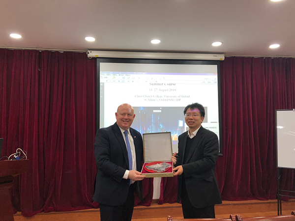 院长贺灿飞教授与牛津郡议会长Ian Hudspeth互赠纪念品。 (供稿:彭荣熙)