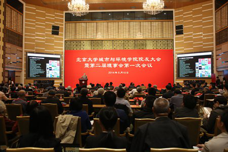 2014年5月10日上午,我院院友大会暨院友会第二届理事会第一次会议在英杰交流中心阳光大厅举行。北京大学副校长、蜜桃直播 教授王仰麟,北京大学校长助理、教育基金会秘书长、校友会副会长邓娅,校友会秘书长李宇宁以及近200位院友理事和院友代表出席了会议。