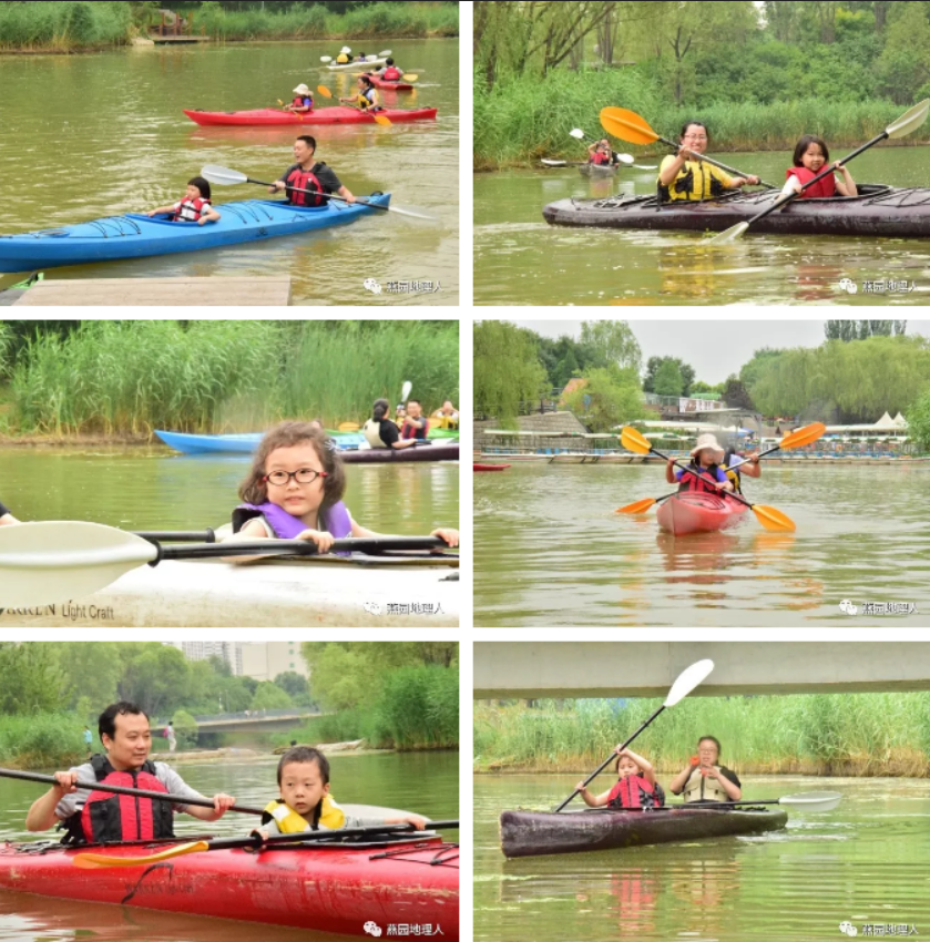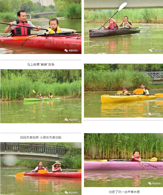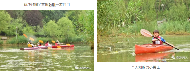 小朋友们选择和爸爸或者妈妈一起划船,没能上船的家长也在岸上奔走着为大家采风拍照。所有家庭都有秩序的上船了,体验互动正式开始。大部分小朋友和校友都是第一次体验轻舟,笑容洋溢在脸上。从开始的生疏,不会转向,慢慢开始熟练,不一会,大家都离开了码头的水面,深入“探秘”芦苇荡。