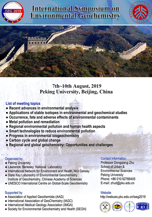 会议简介 目前,全球环境变化已引起了社会的广泛关注,当今的环境科学发展面临着严峻的挑战。环境污染和生态破坏严重威胁着人类的生命安全,亟待深入研究和妥善治理。 环境地球化学国际研讨会旨在为环境地球化学相关领域的国内外学者提供宝贵的平台,分享交流在应对环境变化层面上最新的研究成果。会议迄今已成功举办十届,在国际环境地球化学领域具有重大影响力,促成了环境污染治理、环境过程研究等环境地球化学相关领域的一系列重大研究成果,对环境治理与生态保护有重要的理论和实践指导作用。 环境地球化学国际研讨会孕育于 20 世纪 80 年代的芬兰。随后,第一届正式国际环境地球化学研讨会于1991年在瑞典的乌普萨拉举办。会议初始领导人是Iain Thornton, Ron Fuge和Olle Selinus3位地球化学家。从 1991 年以后,研讨会每三年举办一次,迄今已经成功举办10届,会议地点覆盖全球各大洲,各届与会人员高达300余人,影响深远而重大。 第十一届环境地球化学国际研讨会将于2019年8月7日至10日在北京大学英杰交流中心举行,蜜桃直播-蜜桃直播app