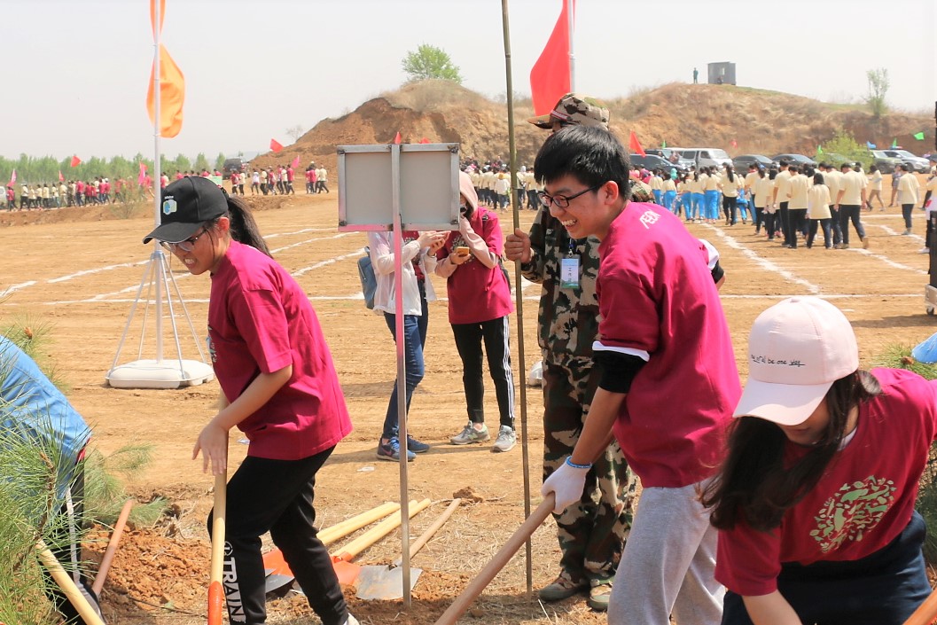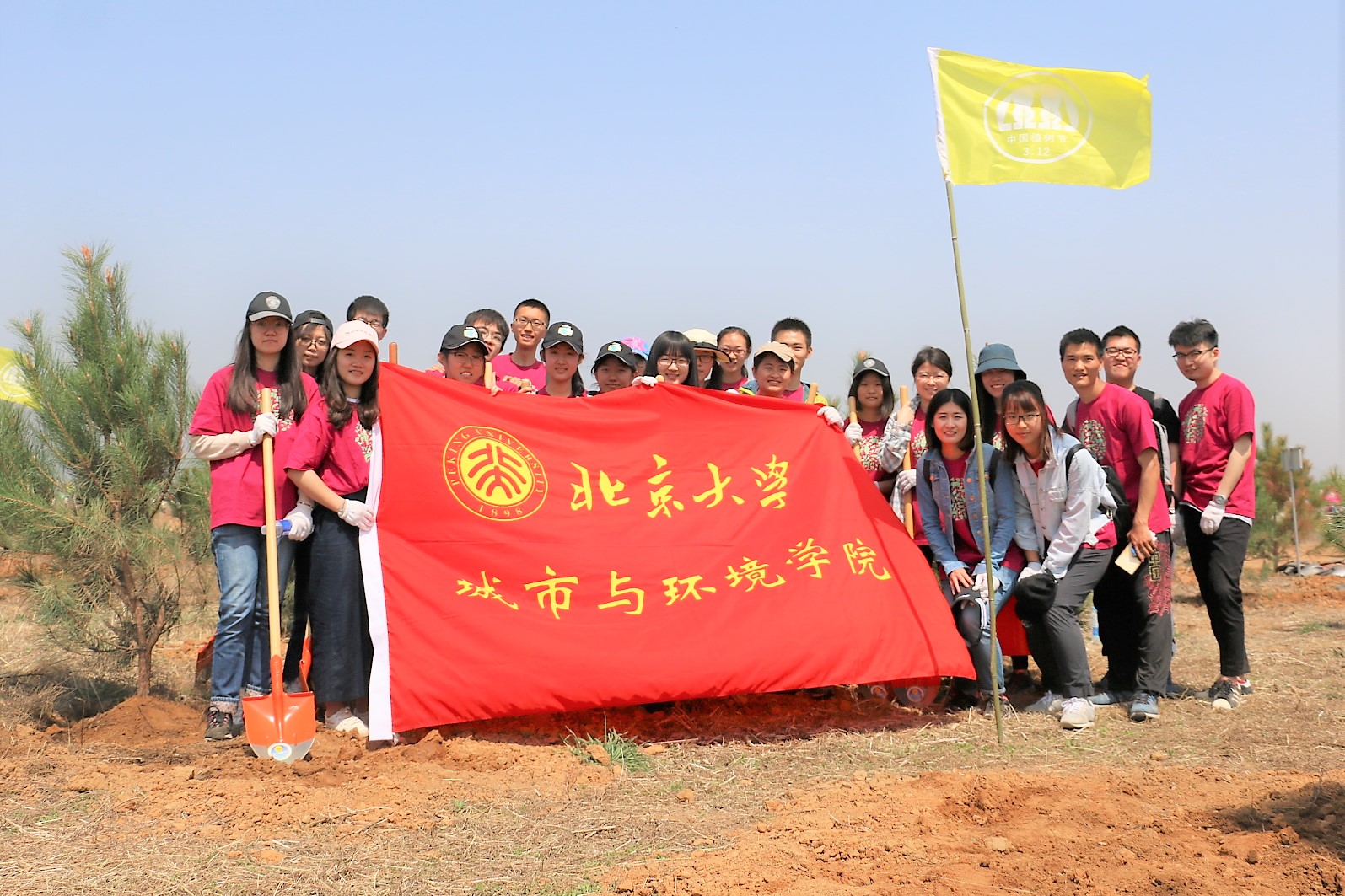 团委常务副书记关汉岳老师带队本次活动。 密云区不老屯镇位于北京市东北部、紧邻密云水库,后者是京津唐地区第一大规模水库,提供了北京市三分之二的用水量。此次植树活动由日本永旺环境财团和北京市人民政府主办,旨在守护水库资源、提高水库周边水源涵养能力、促进中日友好交流。 图1 同学们在东门集合 清晨6:30,同学们在学校东门集合,乘车前往密云区不老屯镇,与800余名中日志愿者会合。上午10:30,北京市密云植树活动开幕仪式正式开始。首先,北京市人民政府副市长卢彦致辞,他表达了对永旺环境财团致力于环境保护和中日友好的欢迎,对中日共同推进环保事业寄予高度希望。随后,永旺环境财团理事长冈田卓也致辞,90岁高龄的冈田先生精神矍铄,表达了对中方志愿者的真挚感谢,并希望两国志愿者们友好交流、积极参加植树活动。最后,日本驻华大使馆公使石月英雄致辞,他引用了习近平主席“前人栽树,后人乘凉”的话语,表示我们正在进行的环保事业将会给子孙后代留下宝贵财富,并希望中日两国的友谊如同植下的绿树一样万古长青。 图2,3 齐心协力植绿树,互帮互助来浇水 上午11时许,植树活动正式开始。北京大学的志愿者们前往所在组植树区域,几人一组合力植树。尽管缺乏经验,但在关老师的指导下,同学们迅速掌握了科学的铲土方法。骄阳似火,同学们也干得热火朝天,铁锹挥动、泥土纷飞,大家按照铲土、填埋、夯土、浇水的流程,齐心协力种下一棵棵马尾松树苗。不少同学表示,想不到在北京市最重要水源基地的密云水库附近,还有这样荒芜待种的土地,他们今后将会更加关注水资源质量、关注我们的生存环境,并将更多投入到类似此次植树的环保活动中。 图4 活动合影 “绿水青山,就是金山银山。”值此世界地球日之际,同学们积极投入到植树活动中、增强爱绿植绿护绿意识、以实际行动践行环保,这正是“城环文化节”精神的生动彰显。改善生态环境,提升生活品质,需要我们携手并进——让我们植下一棵碧树,共赴蓝天绿水之约!