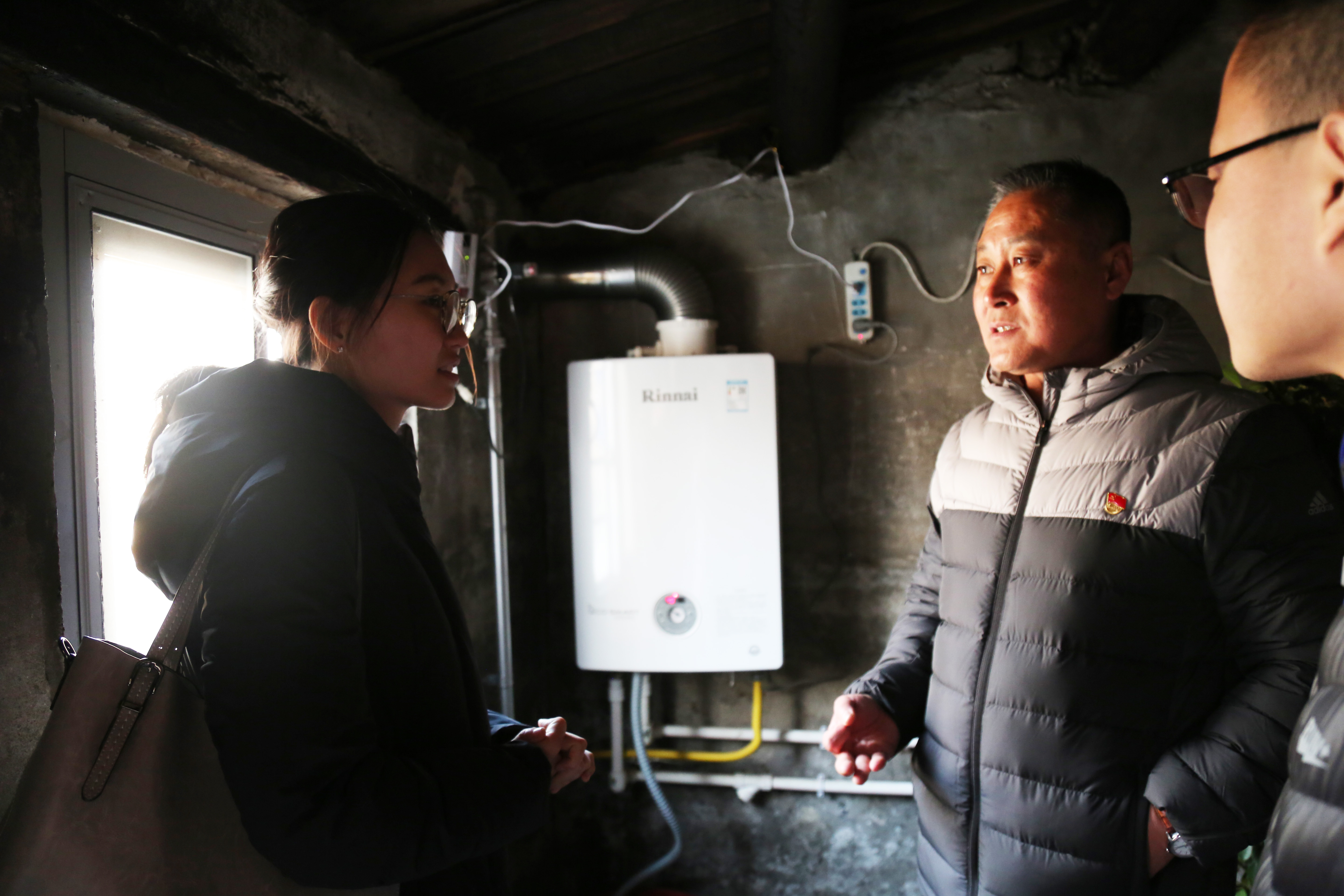 师生学习,学生党员此行充分了解了党员干部在基层工作的敬业奉献精神,当以此为激励,更加坚定为人民谋幸福、为民族谋复兴的理想信念。同时,她希望同学们结合专业知识,发挥自身优势,加强与基层党员和群众的交流,希望学生党支部与村镇党支部建立长期联系,深入了解需求,为党建工作交流和村镇发展贡献青年力量。 同学们也深入阐述学习十九大的体会,并对生态文明建设、乡村振兴、运河两岸文化带、煤改气工程、果树种植销售等问题进行提问,村镇同志耐心解答。现场气氛热烈,同学们收获良多,同时对村镇发展提出了很多专业性的建议。 座谈会现场 同学们与村镇干部深入交流 会后,村支书果松军带领师生们走到村民家中,实地考察煤改气工程,师生们仔细观察,详细询问。从室外的管道铺设、到室内的器具安装,从每天的燃气用量,到燃气价格村民是否满意等等,一切从村民现实生活出发,关注民生质量。通过实地走访考察,师生们对煤改气工程有了详细了解,也看到了中国在绿色发展道路上迈出的坚实步伐。 师生们实地参观“煤改气”线路铺设 师生们实地参观“煤改气”使用情况 合影 通过本次活动,党员们不仅对十九大的理解更加深入,也深深感受到基层干部坚守全心全意为人民服务的初心,同时意识到作为北大学生的责任与担当。支部成员纷纷表示将不忘初心,努力学习,回馈社会,为中国实现社会主义现代化强国的征程中贡献出自己的力量。