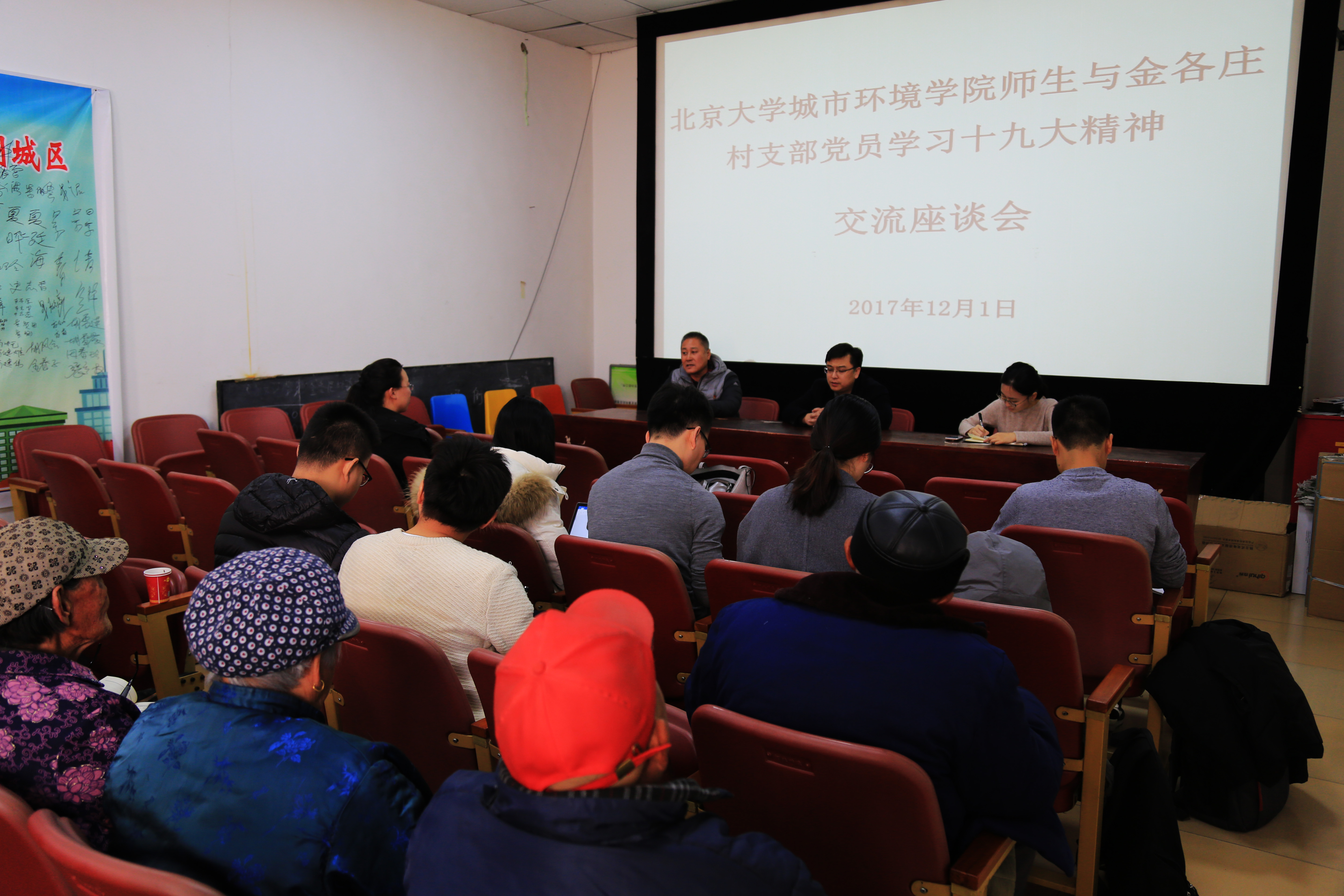 2016级硕士生党支部,赴通州区西集镇金各庄村与村支部开展学习十九大精神主题交流和考察活动。北京市通州区西集镇宣传部副部长郭宝江、组织部赵慧颖同志、金各庄村村书记果松军共同出席活动。活动通过十九大精神宣讲、党建经验介绍、学习体会交流和“煤改气”民生工程参观、流域环境考察等,密切了学生党员与基层党员之间的联系,深入探讨了十九大精神如何真正扎根基层、惠及百姓,是一次党员师生深入基层学习贯彻十九大精神的生动实践。 座谈会开始前,蜜桃直播