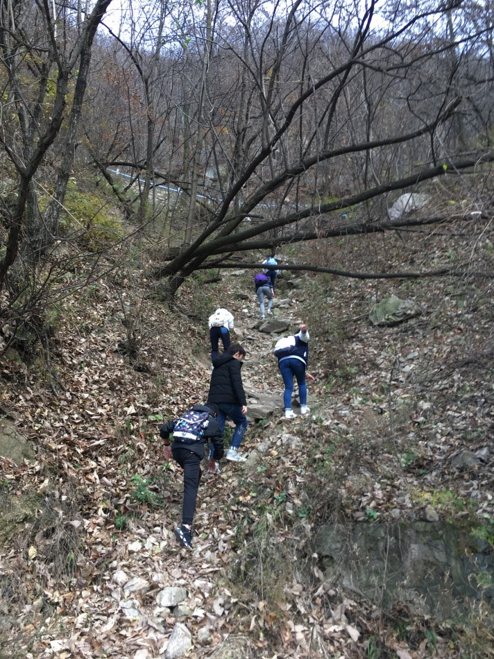 团委常务副书记关汉岳带队,前往洛阳市栾川县,开展“考察栾川县鸡冠洞喀斯特地貌与老君山植物沿海拔梯度的分布”的实践活动。本次活动是一次帮助班级成员灵活运用所学知识、融地貌考察与植被研究于一体的实践活动,是一次学习十九大精神,践行总书记关于生态环境保护指示的学术调研。 出发前,同学们收集了有关考察地老君山和鸡冠洞的文献资料,并汇总讨论,为考察打下理论基础。而在11月24日晚前往洛阳市的火车上,班级同学成为车厢安全员,在实践途中承担起北大学生应有的社会责任。 经历一上午的车旅颠簸,班级同学们于中午来到了实践活动的目的地之一——老君山。为了更好地考察老君山海拔梯度上植物分布的规律,同学们放弃乘坐索道上山,依靠强大的毅力和良好的体魄仅用了3个半小时从800m海拔爬至1700m海拔,走过原耗时约5小时长达15.5公里的盘山路,体现出北大人不畏艰苦的品质。 实践团师生攀爬老君山 登山期间同学们时常驻足,结合自身所学知识以及相关软件辨识植物,遇到疑难时则会向院里相关专业老师寻求帮助,例如中国植物学会理事刘鸿雁老师帮助同学们辩认出白羊草和短梗南蛇藤。 白毛草 短梗南蛇藤 随着海拔升高,同学们明显感受到温度的变化,沿途开始出现结冰,海拔升至1300m后林子里可见积雪。在手机软件提供的经纬度和海拔的帮助下,同学们沿海拔梯度分级记录下沿途所见的植物。碍于文献资料缺乏以及时间受限,不能完全正式地体验研究过程,是行程中少有的遗憾之一。 老君山高海拔区域的冰雪 第二天上午同学们来到了中国北方最大的溶洞——鸡冠洞,因景点管理需要,无法在洞内长时间停留,同学们提出了“鸡冠洞内CO2浓度季节变化规律及其驱动因素”的科学问题,带着问题参观。 鸡冠洞内钟乳石与石笋形成的“千年一吻”景观 参观结束下山时,在鸡冠山上传播社会主义核心价值观的板报前,团支书主动停下为大家讲解,他结合自己的现实体会娓娓道来,同学们也表示了极大的兴趣,认真听讲。 实践团师生在鸡冠山脚学习社会主义核心价值观 由于实践行程紧凑,带队的学工老师在回城的大巴上为大家讲解了十九大会议报告内容,传达十九大精神。十九大报告中指出,要实施重要生态系统保护和修复重大工程,优化生态安全屏障体系,构建生态廊道和生物多样性保护网络,提升生态系统质量和稳定性。同学们听完讲解后,对报告中提出的要加强党的领导、重视生态环境保护等要求表示了衷心的支持,对十九大报告中蕴含的科学精神有了更加深刻的理解。 带队老师讲解十九大报告精神 学习完十九大精神后,同学们紧接着投入到“鸡冠洞内CO2浓度季节变化规律及其驱动因素”这一问题的讨论之中。 实践团师生深入讨论十九大报告 同学们首先得出了基本一致的判断:夏季鸡冠洞洞内二氧化碳浓度更高。在探讨成因时,一位同学提出季节温度不同导致岩溶作用反应速率不同,进而导致二氧化碳浓度差别的猜想,但因鸡冠洞内四季18℃恒温被大家否定。这时带队老师提出,夏季游客增多会引起二氧化碳浓度的升高,这被同学们所接受并归入影响因素之中。进一步讨论后,组织讨论的班长认为这一问题的本质在于,在鸡冠洞内温度接近不变以及几乎没有植物存在的背景下,鸡冠洞这个系统与外界的物质与能量交换。在这框架下,同学们提出了流经溶洞的暗河可以会产生脱气作用,冬夏季鸡冠洞通过出入口与外界交换气体的差异等可能的原因,大家对这一问题的科学解释有了更深刻的认识。 实践期间,师生还利用空暇时间组织团队建设活动,交流本次实践的感受。本次实践目标清晰,内涵丰富,环节圆满,同学们将自己所学的生态地理知识应用于现实具体问题中,对所学的地理学科、对自己的发展道路以及十九大报告精神都有了更加深刻的认识。