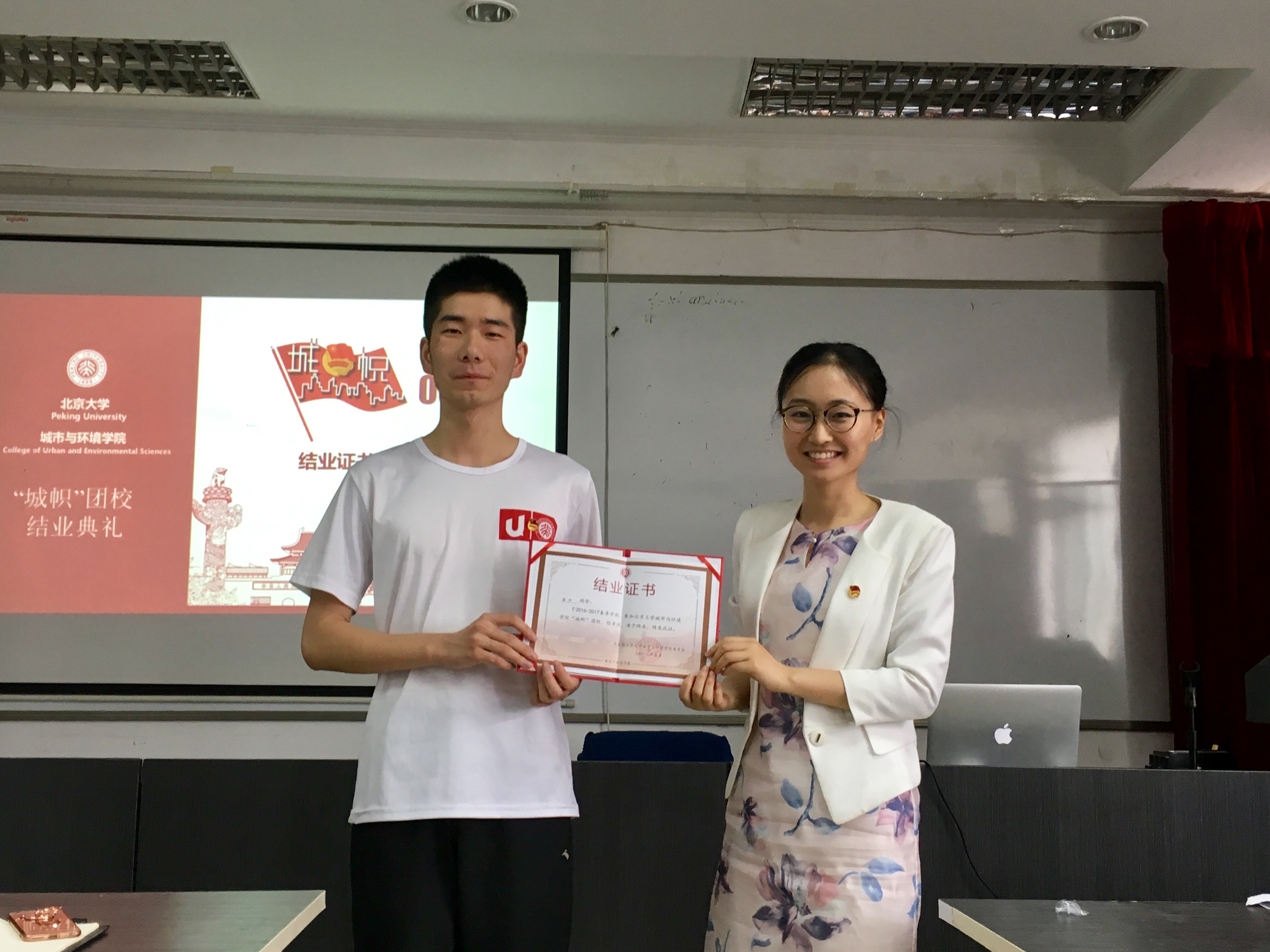 首期“城帜”团校的历程,重温团校开幕式、通识讲座、重走北京中轴线、“绿漾燕园”植树、黑豹野生动物保护站实践、“一学一做”讨论课等一系列精彩活动。2015级本科生徐帅作为优秀学员代表发言,分享了参加团校的初衷,以团校举办的各个活动为主线,畅谈自己的学习收获和心得体会,表达了自己传承五四精神、做合格共青团员的决心。最后,王宇凡老师为学员代表颁发结业证书。 本次学习活动是蜜桃直播