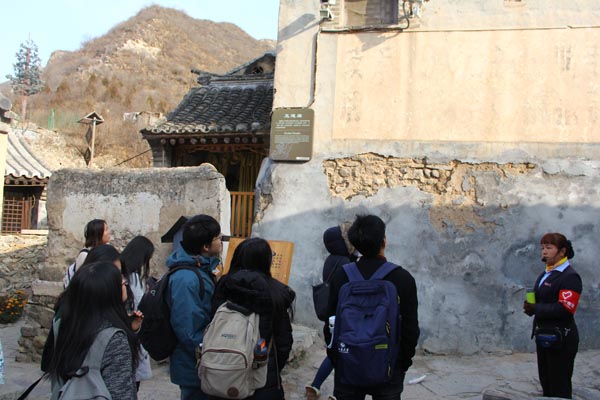 退休教师武弘麟副教授带队。 11月10日7:00,党团支部成员在学校南门集合,驱车前往门头沟区斋堂镇。到达目的地后,同学们首先前往爨底下村进行考察学习。古村落坐北朝南,依山而建,呈扇形结构延伸,错落有致,形成独具特色的山地四合院,同学们纷纷感叹于这浓郁的古村风情。 图一.同学们在爨底下村合影 深入古朴村落,助力遗产保护 正式开始调研考察,讲解员带领同学们一边参观,一边详细介绍爨底下村的历史文化背景。爨底下村的形成始于明朝加强边境防守的需要,位于一道军事隘口——爨里口之下,是我国首次发现的保留比较完整的山村古建筑群,拥有巨大的遗产价值。整个村落建于缓坡之上,层层升高,依山而建,以村后龙头为圆心,南北为轴线呈扇面形展于两侧,使全村形不散而神更聚,三条通道惯穿上下,而更具防洪、防匪之功能,充分体现人、建筑与环境的完美结合。 图二.爨底下村整体形态 古村中随处可见错落有致,装饰精良的四合院,历经沧桑但却保留着古朴的韵味,经久不衰。讲解员向同学们介绍到,村内有院落74个,房屋689间,大部分的院落为清后期所建,也有少部分建于民国时期。引入眼帘的院落,布局合理,结构严谨,颇具特色,门楼等级严格,门墩雕刻精美,砖雕影壁独具匠心,壁画楹联比比皆示。同学们纷纷拍照留念,同时也意识到保护传统村落遗产责任之重大,当代青年人责无旁贷。 重温红色烙印,再燃爱国炽情 历经近代战火的洗礼,爨底下成为了抗日模范村,它地处平西抗日根据地的摇篮和中心,在长达八年的民族解放战争中,这里的人民在党的领导下团结一心,奋勇抗日。漫步在山村之中,古朴的民居建筑墙壁上的题字和标语依稀可见,犹如走进历史长廊,抗战时期、抗美援朝、大跃进等各个历史时期都能在此找到印记。时光虽斑驳了古墙,但依然清晰可见“用毛泽东思想武装头脑”的标语,同学们驻足停留,感受这穿越时光的信仰和力量,仿佛看到了战争年代,无数怀有爱国热血和报国志向的人们义无反顾奔赴战场,只为了国泰民安,天下太平,仅是看到这些文字,就足以让人热血沸腾。 图三.村中随处可见的红色标语 随后,同学们看到了村中的代表性庙宇建筑——五道庙,作为村民的村落的中心点,也是共同记忆的输出地,红色烙印的集中出现,佐证了当时整个村落的红色时代主题。尽管随着风雨的侵蚀,标语大多已经斑驳,但革命的传统却代代传承,历久弥香,正如这传承几百年的姓氏印在每一位爨底下村民血脉中,保家卫国的传统也镌刻在他们基因之上,也深深震撼了同学们的内心。 图四.同学们参观五道庙 历经沧海桑田,静看世事变迁 古村的道路也别具特色,多用青石、灰石、紫石板铺路,质地坚固而漂亮。穿过一条条胡同小道,踩过刻有历史印记的台阶,同学们走进这古色古香的院落房间进行参观。除了房屋内部精致的修缮,展出的族谱也吸引了同学们的注意。相传该村祖先于明朝清乐年间随山西向北京移民由山西迁移至此,建立了韩式家族聚居之地,至今爨底下村居住的依旧是清一色的韩氏家族。讲解员向同学们介绍,爨底下村人口最高时达 54 户、183人,改革开放后,面对城市化的吸引,村内大量劳动力外出打工,并在城镇安家,2000年仅剩下29户、71人,村庄一度面临整体搬迁,古山村风貌和田园景观得以保留。经过20年休闲旅游业的发展,爨底下村由传统农业型村落演变为现代旅游型村落,人口密度重新分布,村落功能以及居住模式发生了显著的变化,生活空间悄然转型和重构。 图五.同学们认真学习房间内部的展板知识 穿过房间内部,同学们来到了爨底下村地势最高、居中轴线的宅院,也是该村的代表性建筑广亮院,村民称其为“楼儿上”,建于清代早期。同学们在此远眺,村落里错落有致的房屋建筑尽在脚下,一座座低矮古朴的房屋,凝重厚实中透着威严,恬淡平和中积淀着深厚的文化,居住的人们来了又走,周遭的四季循环往复, 只有终年肃静的群山,见证着爨底下村的兴衰。 图六.带队武老师为同学们讲述古村的历史背景 环保从我做起,拥抱绿树蓝天 在参观完特色建筑之后,同学们自发前往金蟾山的观景平台。一路上都是陡峭的山路,没有护栏的保护,同学们彼此鼓励,相互扶持,最终成功登顶,一览全景。此刻正值初冬,爨底下村显得草木萧瑟,山土贫瘠,仿佛是一个缩小版的黄土高原。支部中有很多环境专业出身的同学,就爨底下村的生态环境现状展开了讨论。古村群山环抱,空气湿润清新,相比正笼罩在严重雾霾中的城市,爨底下村犹如一个世外桃源。但是整个村落的植被覆盖度比较低,十分荒凉,大片的土地可以被开发利用,栽种植物,推动整个村落生态环境的优化。此外水土保持也是一个值得关注的问题,古村处于环山的地理位置,如果不重视水土保持,突发暴雨时容易造成山体滑坡、泥石流等灾害,危害居民的人身安全。 在上山的过程中,垃圾桶的分布十分稀疏,导致山路上垃圾遍布,影响整个环境的美观,同学们十分自觉的爬到半山坡才把垃圾放进垃圾桶。 图七.同学们登上金蟾山顶合影留念 合理开发资源,推动乡村振兴 参观完爨底下村之后,同学们又来到了东南约3公里处的双石头村,因村口屹立着两块高大而圆润的巨石而得名,这两颗巨石又名“鸳鸯石”。双石头村与爨底下村类似,主要是保存较完好的明清民居,其中很多都是精良的四合院和三