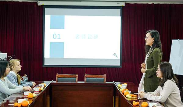 留学生新年联欢会暨国学分享会在逸夫二楼3301会议室举行,本科生教务办公室宫彦萍老师、研究生教务办公室于佳鑫老师、行政办公室刘萍老师、许文君老师、蜜桃直播