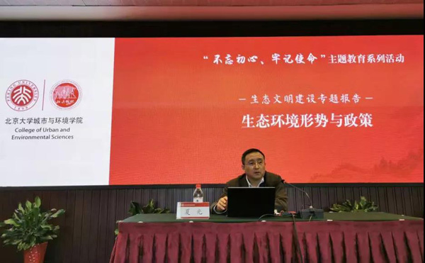 “不忘初心、牢记使命”主题教育系列活动之生态文明建设专题报告会在北京大学中关新园科学报告厅成功举办。会议邀请生态环境部国家生态环境保护督察专员夏光研究员就“生态环境形势与政策”这一主题进行解读,蜜桃直播