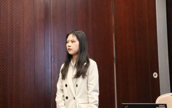 研究生菅艺伟同学作了题为“Nationwide Estimates of Nitrogen and Phosphorus Losses via Runoff from Rice Paddies Using Data-constrained Model Simulations”的报告。菅艺伟同学为大家介绍了一种改进的N、P流失估算模型。她利用该模型对2010年中国单、双水稻系统的氮磷径流损失情况进行了重新评估,并以此介绍了不同减排措施及其减排潜力的评估结果。 菅艺伟同学作报告 蜜桃直播-蜜桃直播app