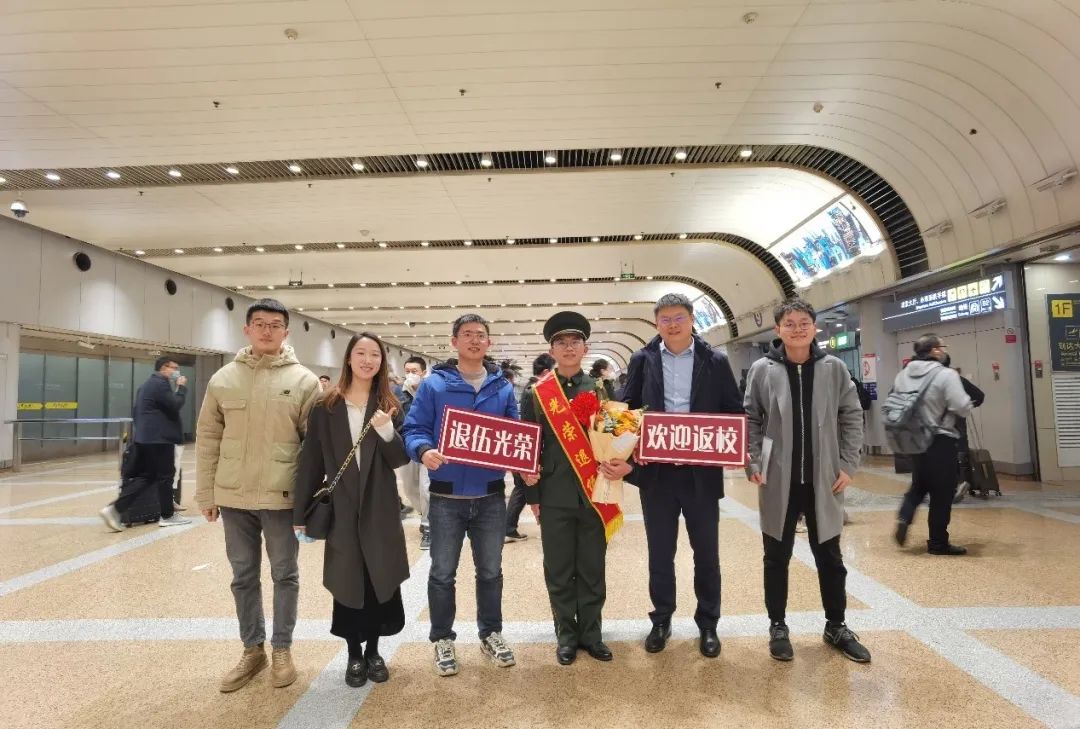 党委书记彭建,团委常务副书记宋宛儒前往上海将徐思昊亲手接回校园,辅导员葛孟帅、王良蛟,城环退伍士兵李龙盛在机场高举“退伍光荣,欢迎返校”的手牌等待凯旋。 下午15时,海警某部政治教导员姜博、大队长郭子晖、指导员张境埔、中队长李振赫,与城环蜜桃直播